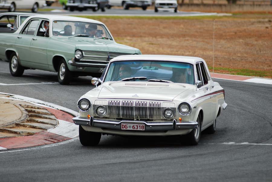 We met at OTR Bolivar at a sparrows fart time of the morning to be at the track by 8am. Met the Cadillac La Salle Club of SA in the car park of the track, where we had a bit of a meet and greet!! Once parked, had a walk around the cars, watched the racing and mingled for the day! Some amazing racing was seen in these old cars. What a hoot!! We also did about 5 parade laps during lunch, which was great… especially when a hotted up Camaro was turfed off the track for hooning…. He may have been in the Cadillac club…maybe…..!! Sean Hayter along with his neighbour, Rod also came in the Commodore, so Sean had the Navigator seat in the Dodge for the parade laps and Alan gave Rod a thrill in the Corvette. Thanks to Peter and Lyn, Alan Litchfield and Greg Woods for coming in their cars and Sean and neighbour Rod. Thanks Greg for shooting us while we were on the track! Sorry it fell on the same day as McLaren Vale Vintage and Classics. Maybe next year!
