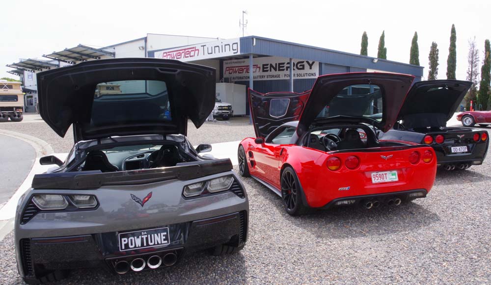 Banjo Brian had an offer of a club event at the business of Powertech/Camperagent on Pt Wakefield Rd, with a free lunch thrown in as part of the deal from the owner John Munro.  Traditionally club events that include free stuff are well attended and 25 Corvettes rolled up.  John Munro arrived for the cruise in his modified C7 Z06 with a family member in his C6 ZR1.