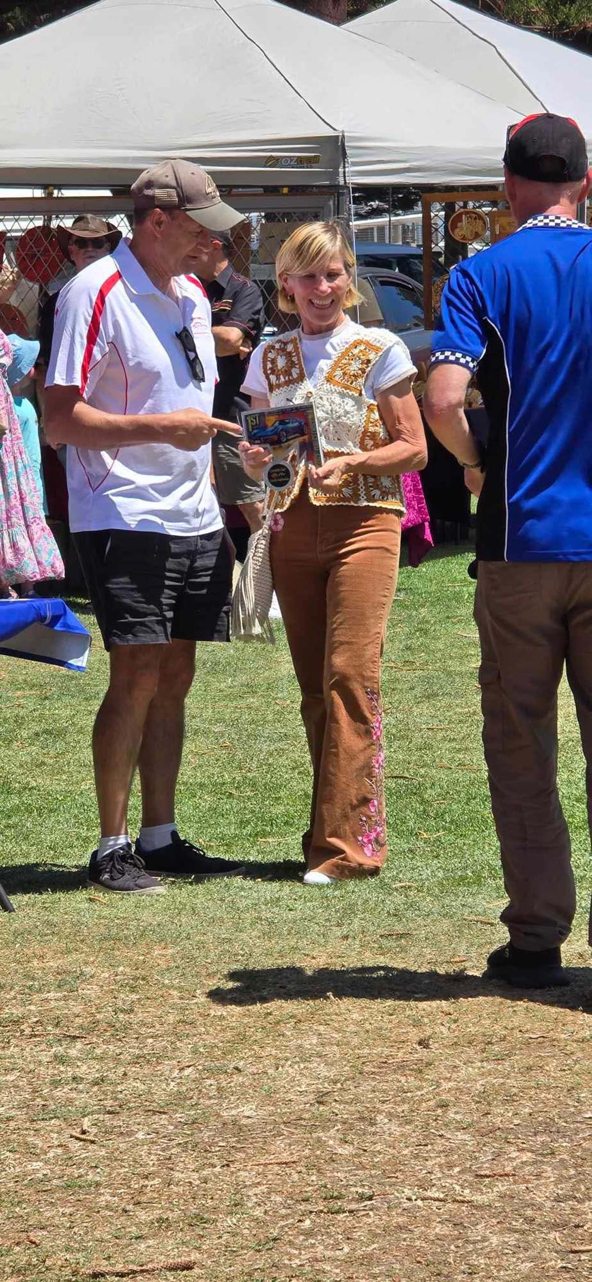 happen. So, it was only a chamois of the cars and we were off on the cruise through the main street of Parkes, then off to the showground. I counted 103 cars, everything from C1 to C8 Z06 and Eray. Wombat and Allan graciously offered to help with judging on the day. The girls went off on the Parkes mystery bus tour, including the Elvis museum.